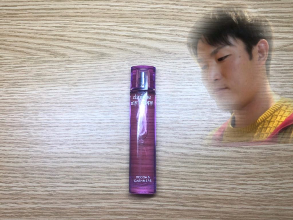 今回使用されたのは”clinique my happy ココア&カシミア”という香水。”上質なカシミアをまとって芳醇なココアにほっと心満たされるような、ほのかにムスクを感じるオリエンタルアンバーの香り”(CLINIQUE公式HPより引用)