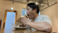 なかみぞさん(36)が今月2日、ZOZOマリンスタジアムでの昼食で都城産の牛肉を平らげた。