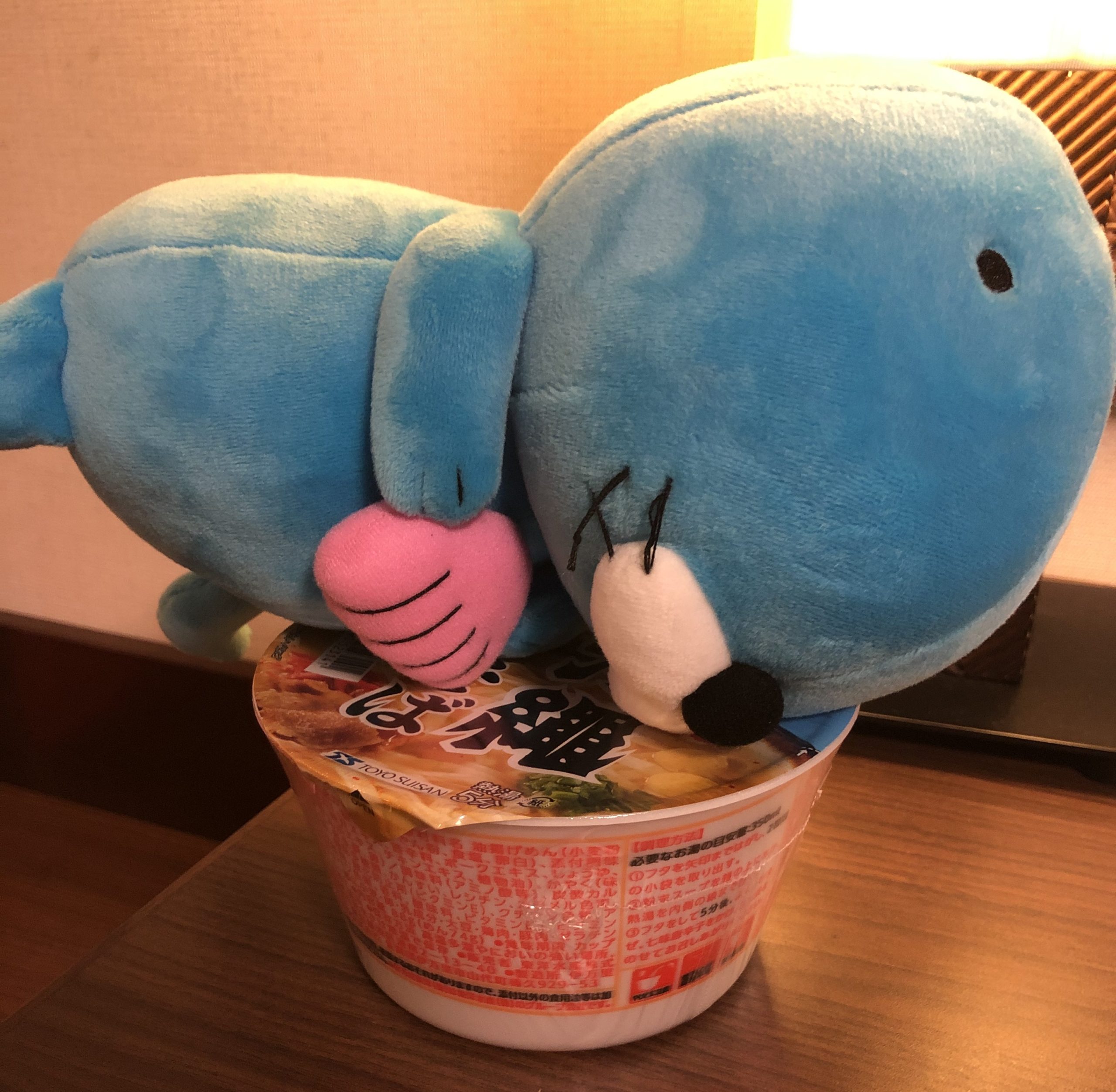 「仕事が長引いてしまい食事の時間に間に合わなかった日、先輩にコンビニでサラダと豚丼弁当、沖縄そばを買ってもらった。しかしサラダと豚丼弁当で満腹になってしまい、沖縄そばまで辿りつかなかった。せっかく買ってもらったのに申し訳ない」と沖縄そばを手に入れた経緯を語った。
