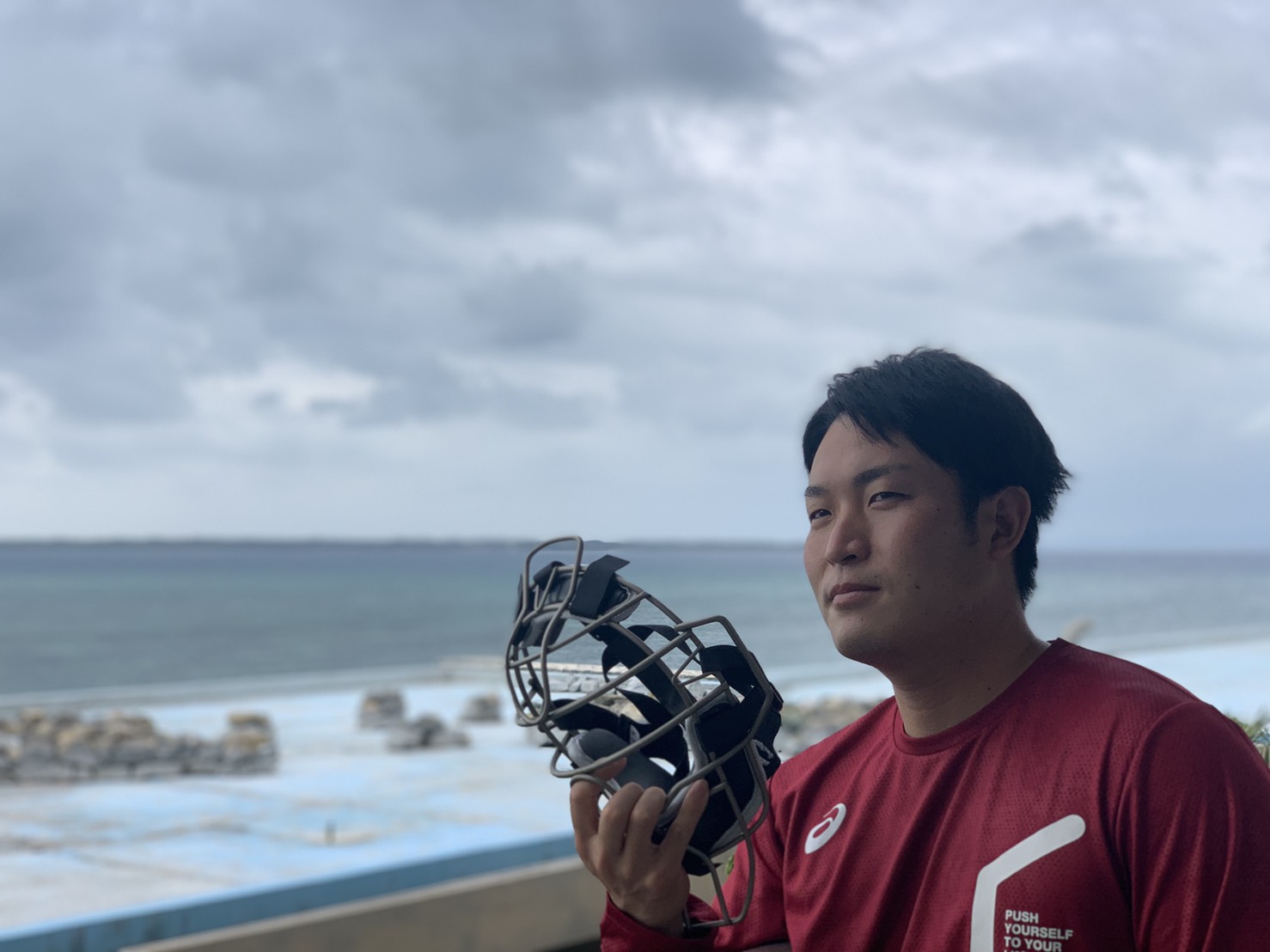 ベランダから見える空には雲がかかっていたものの、透明度が高い海水と石垣島の白いビーチはえんじ色のTシャツを身につけたなかみぞさんを映えさせた。