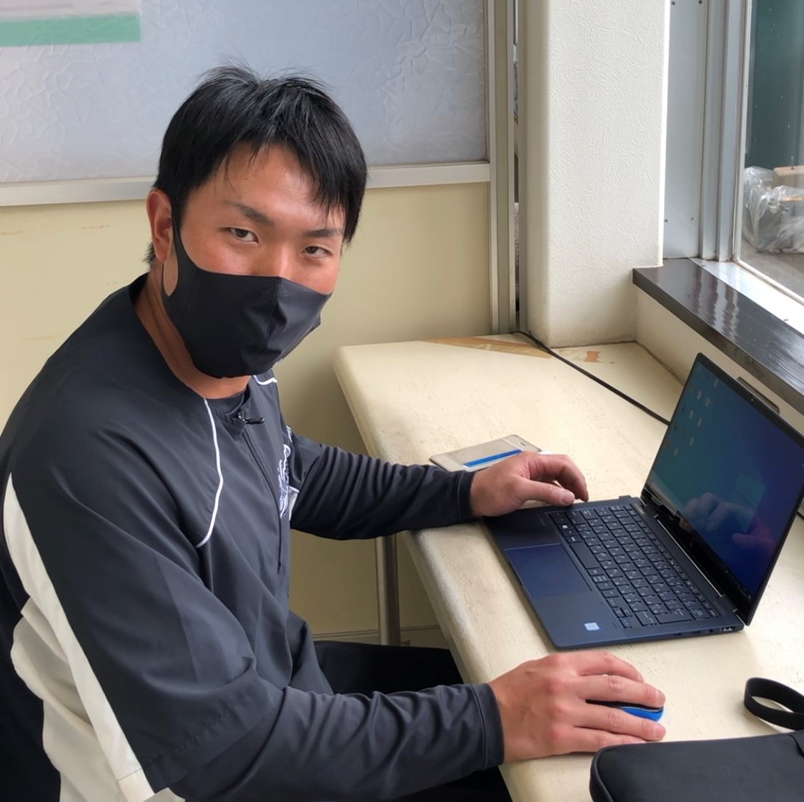 「ッターン」。エンターキーを強烈に叩く音がロッテ浦和球場バックヤードにこだまする。ブルペン捕手のなかみぞさん(31)はグラウンドでの仕事の他にパソコン作業もこなす。