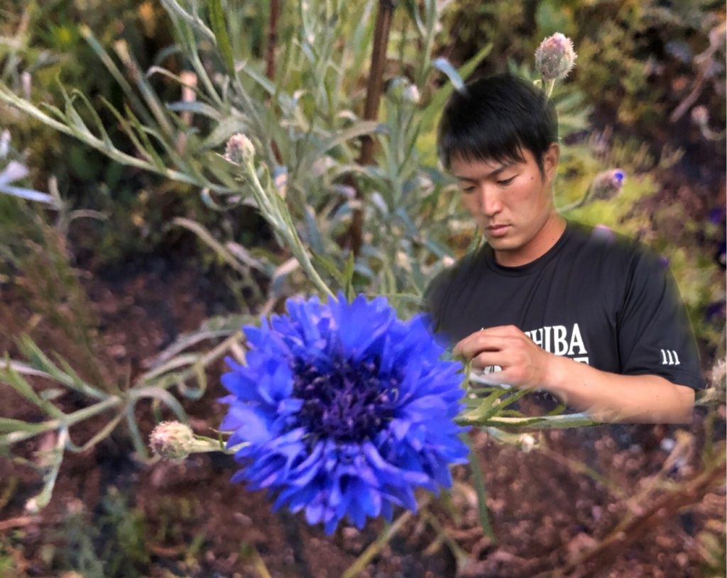 「ちょうど信号待ちをしている時に、美しい色彩が視界の隅から目に飛び込んできました。他にも黒や紫のヤグルマギクが咲いていましたが、僕はこの色(青)がいちばんお気に入りですね」と発見した経緯を話す。