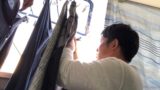 職場に到着後は早々に半袖Tシャツからストライプユニフォームにスイッチ。アンダーシャツは長袖を選び、前腕部の日焼けに備えた。日中は気温も上がり、なかみぞさんの額に汗がにじむ場面も見られたが、なんとか業務終了まで凌いだ。「今日は暑かったが、それよりもUV対策に重点を置いた。汗をかいてしまったが今日のところは及第点」とこの日の中盤を振り返った。