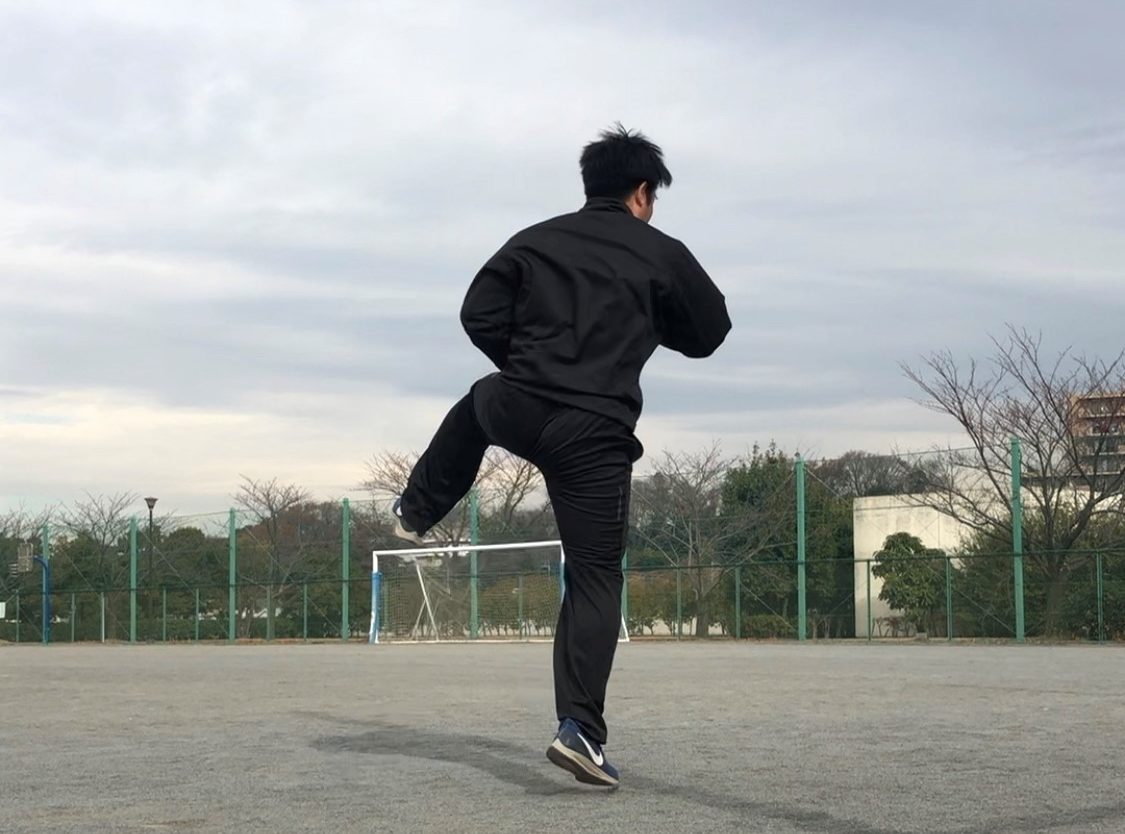 写真:公園で一人身体を動かすなかみぞさん(中央)