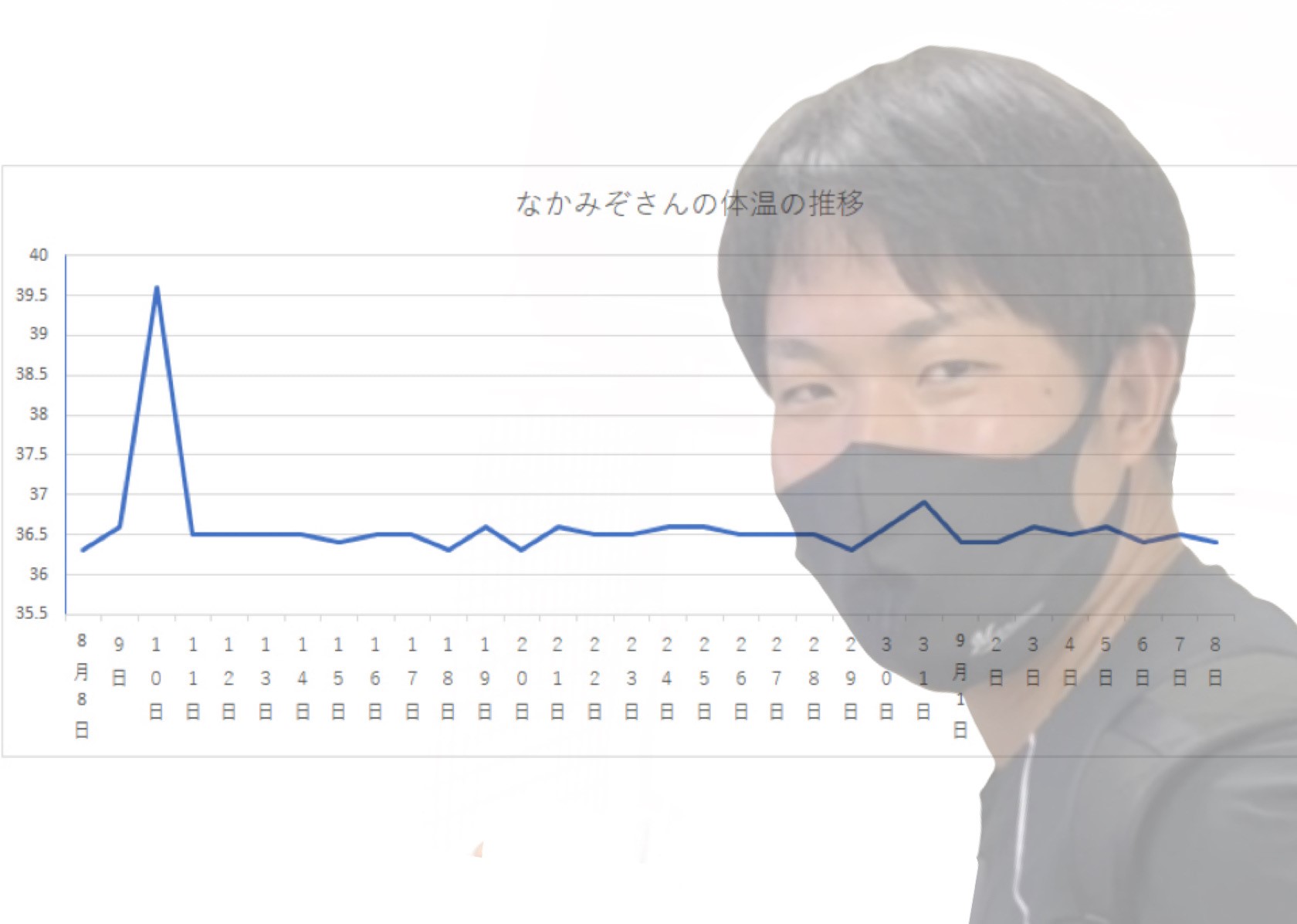 なかみぞ庁によると、なかみぞさんの直近1か月の体温は、新型コロナワクチンを接種した翌日の39.6度を除けば平熱の36度台中盤を維持している。8月の35度を越える猛暑日での外仕事や週6日勤務というワークスタイルで、多少の疲労感はあるものの、毎朝の検温で平熱を保ちその他の不調も特に見られない。なかみぞさんの体調に詳しい本人によると、睡眠と食事、適度な運動と共に手洗いうがいの徹底がなかみぞさんの健康を支えているという。