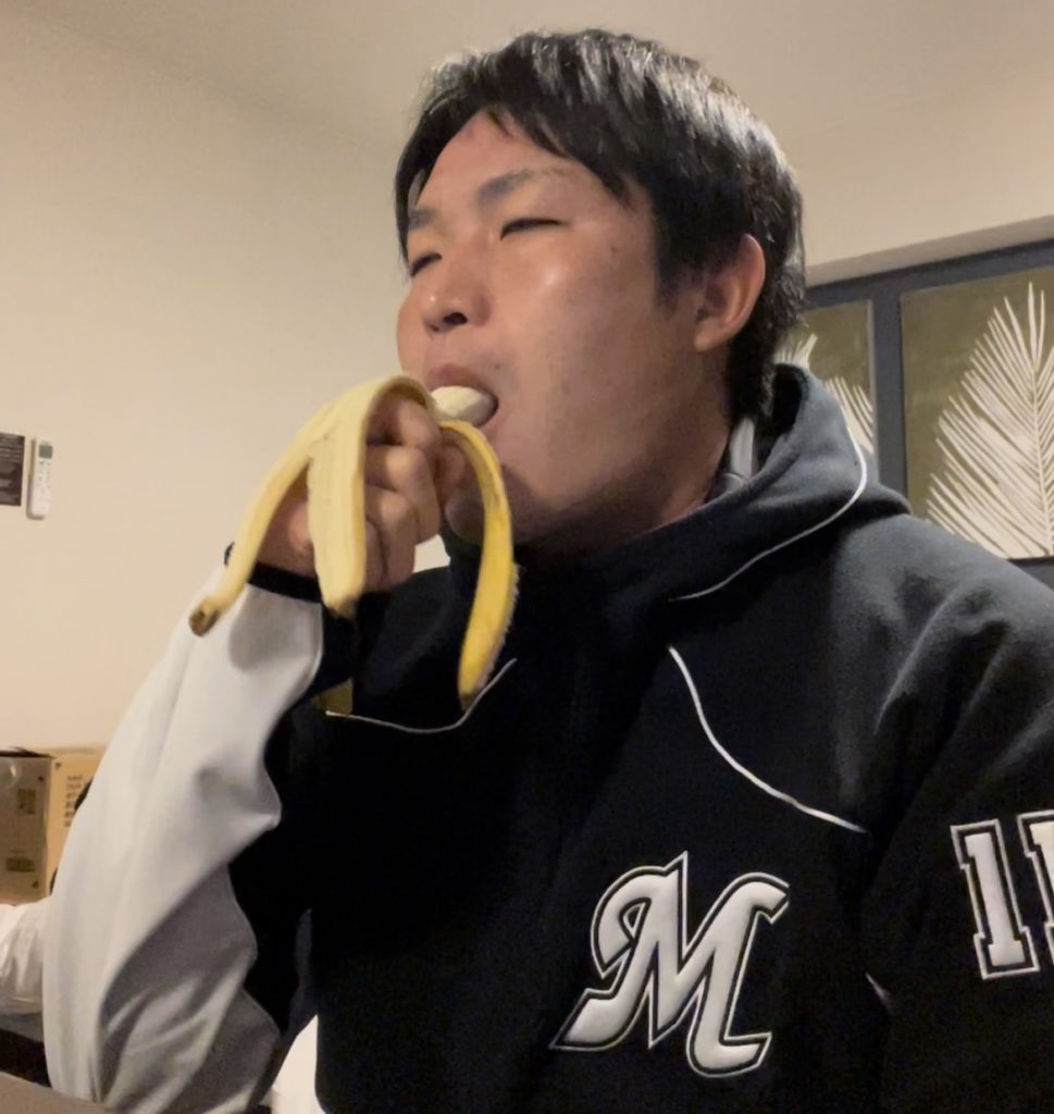 細く鋭い寝起きの眼を擦りながら、朝みぞさんは今日も出発前にバナナを頬張る。