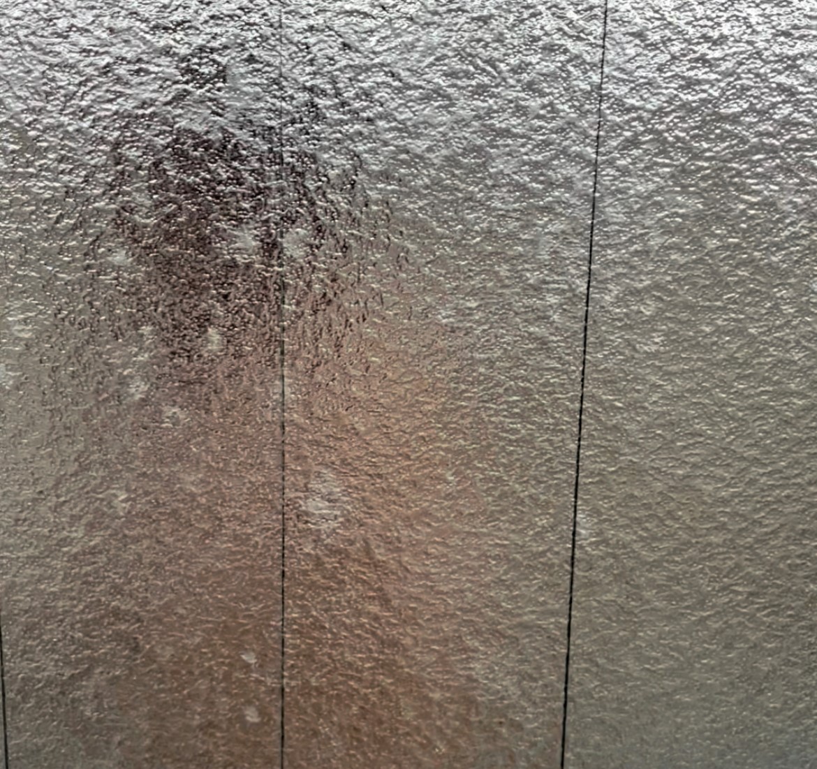 お風呂場の磨りガラスの向こうで熱唱するなかみぞさん(写真奥)