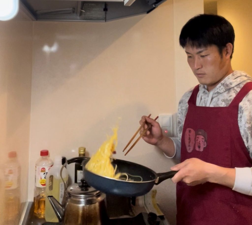 なかみぞさんは今月7日22時頃、自宅のキッチンでパスタを作った。「作ったのは(アーリオオーリオ)ペペロンチーノ。おいしいごはんが食べたいという強い気持ちを持ってキッチンに入った。おいしくできてよかった」と自身の手料理を振り返る。